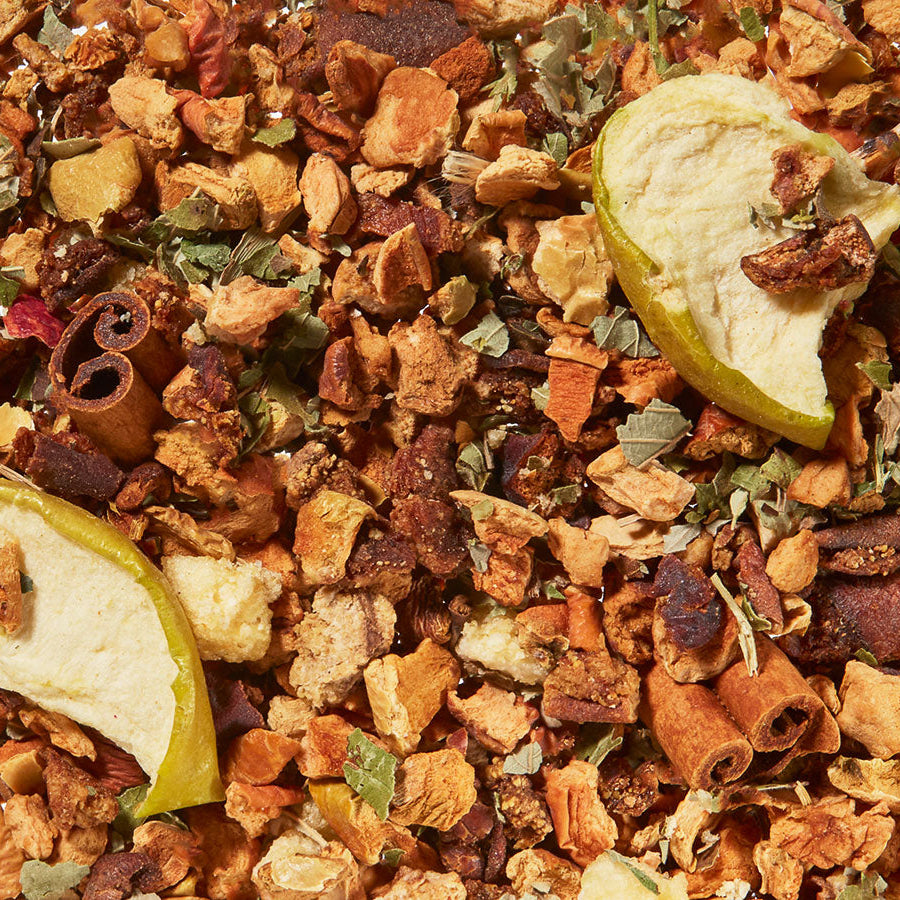 Apples, pears and warm spices come together to create a caffeine-free, sweet, mellow, fall indulgence. This has proved to be a fall favourite, so don't wait. It won't last long!